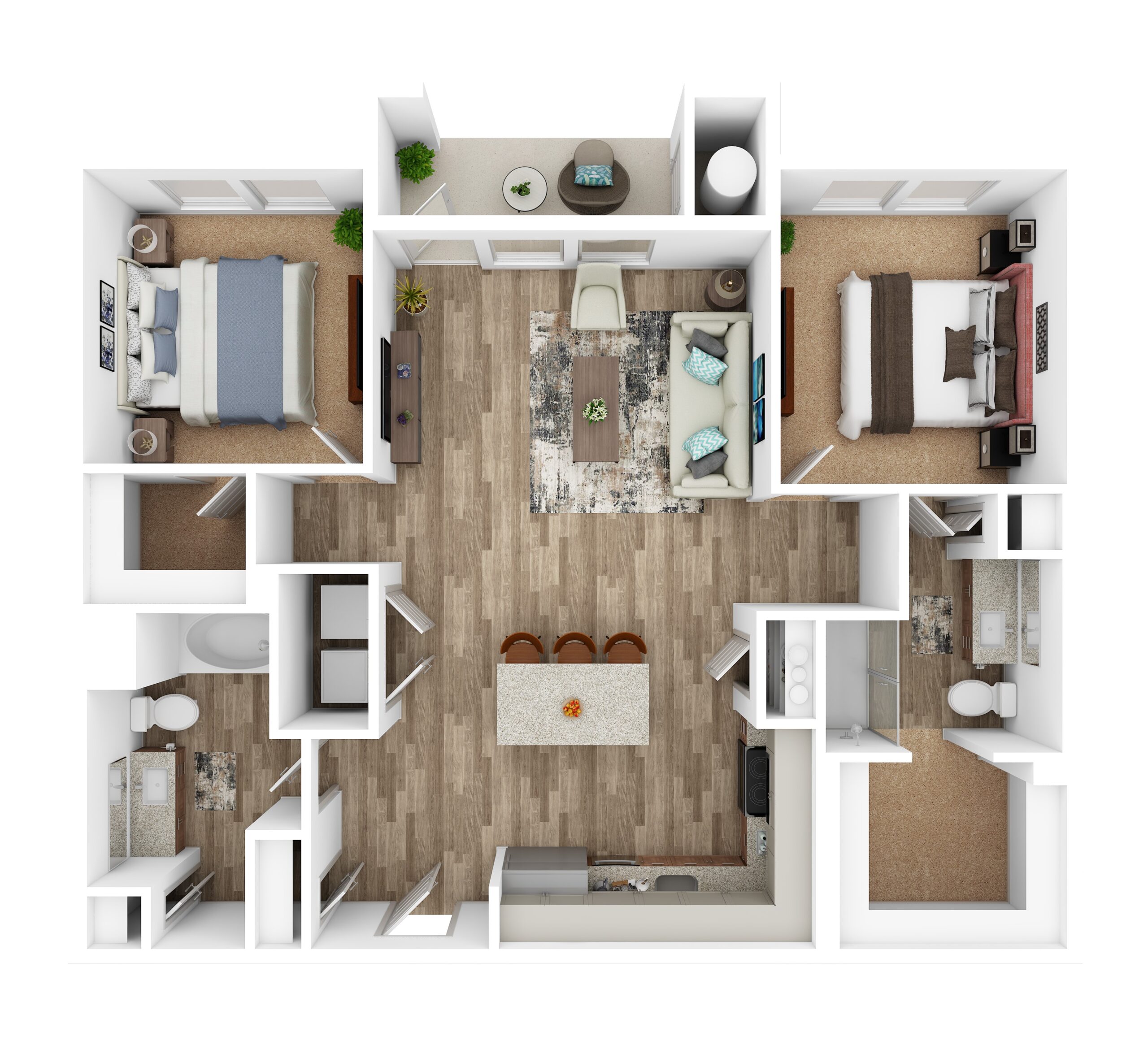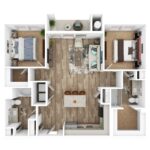 The B1 plan in Ascend Symmetry offers 1,093 square feet of space with two bedrooms and two baths. Please call 702-444-7754 for leasing information.