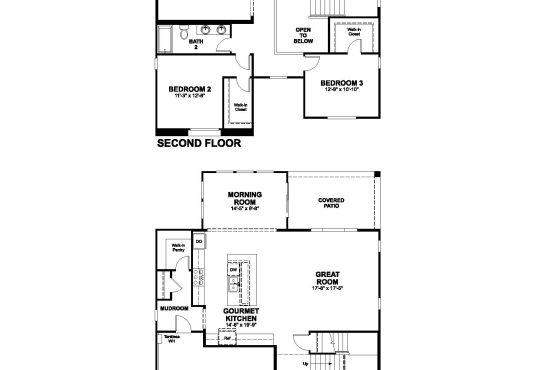 The Coronado plan in Interlude by Richmond American Homes features 2,730 square feet of living space. The main floor of the Coronado floor plan provides spaces for working and entertaining. Enjoy a great room, an open morning room with covered patio, and a gourmet kitchen, complete with center island and walk-in pantry off the mudroom. A bedroom and full bath are also included. Upstairs, discover a convenient laundry, a generous loft and three inviting bedrooms, including a relaxing primary suite with an attached bath and expansive walk-in closet. This home starts at $617,950.