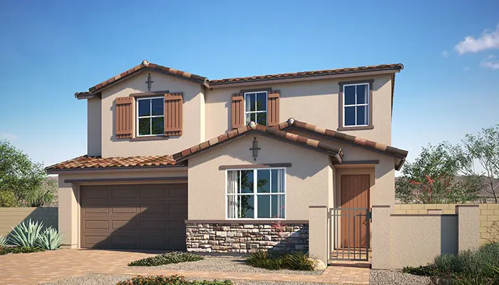 The great room, with its soaring vaulted ceiling, creates an expansive atmosphere, while the 12-foot sliding door seamlessly connects the indoor space to the covered patio, ideal for evening relaxation. The kitchen, centered around a super island, serves as a functional and inviting space for culinary endeavors. Near the entry, a versatile flex space awaits your personal touch—be it a home office, creative studio, or quiet retreat.