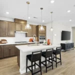 The Willow plan in Opus by Taylor Morrison features 2,768 square feet of living space. Sleek and stylish! Park in your two-car garage, then head inside to find stunning open-concept living. A great room flows to a casual dining area, kitchen with an island, and covered outdoor living, an ideal space for entertaining. Towards the front of the home is a private haven with a porch, laundry room, powder room, and study or fifth bedroom— you get to choose. Also on this floor is a beautiful primary suite with a walk-in closet and spa-like primary bathroom. Upstairs are three bedrooms, one with a walk-in closet, two bathrooms, and a loft or sixth bedroom. Plus, a large game room is the perfect spot for competitive nights with friends! This home starts at $559,990.